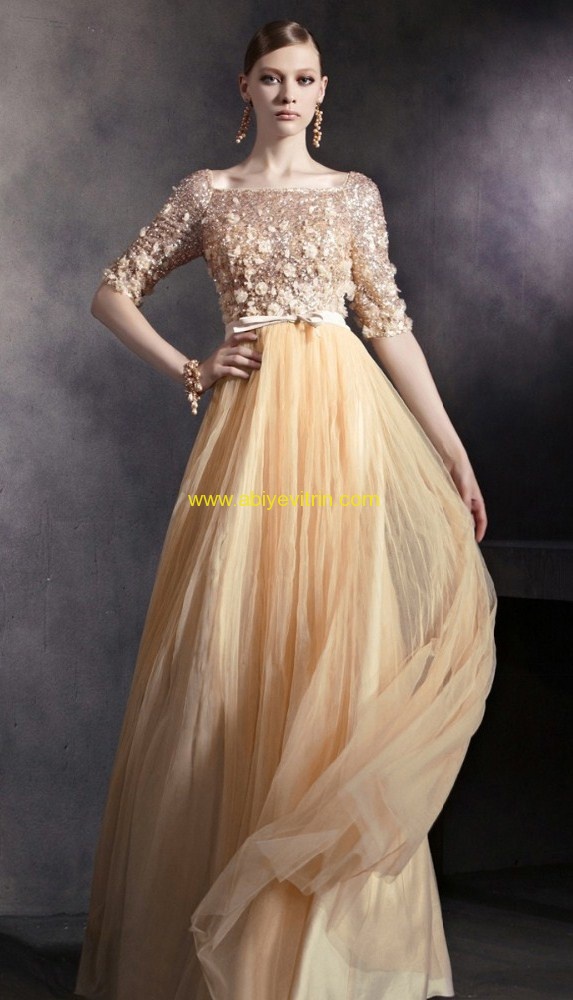 Dantellerle, taş işlemelerle ya da tüller kullanılarak göz alıcı yarım kol abiye yaratmak mümkün.Düşük yakalı abiyeler de de uzun kol kullanıldığını görüyoruz.Üst kısmının komple dantellerden yada işlemlerden oluşan abiyelerin alt kısımlaı ise şifon eteklerle tamamlanıyor.Srtaplez model bir elbisede bile kullanılan uzun kol kışında straplez şıklığını sizlere sunuyor.Farklı bir stil oluşturan uzun kollu abiyeler dantellerle birleşince daha bir güzel oluyor.